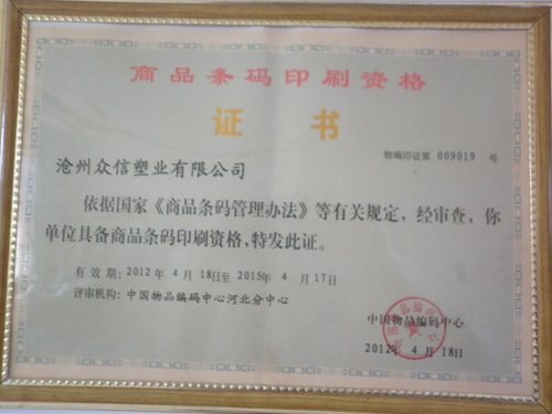 商品条码印刷资格证书